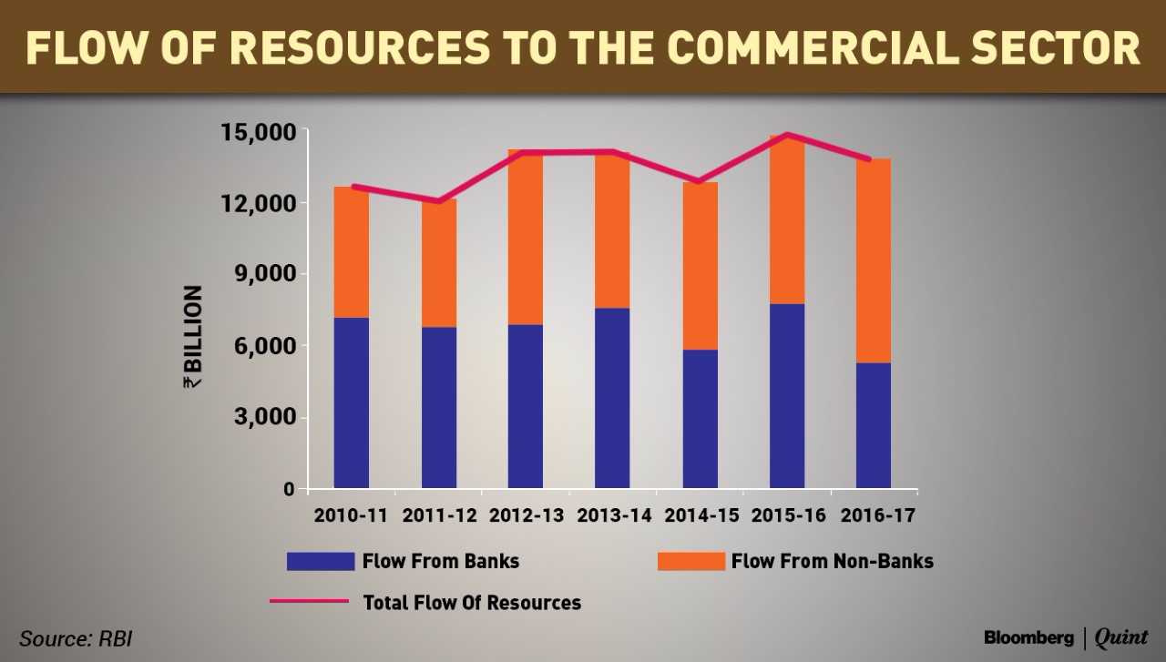 Banks' share in the flow of credit, which was around 50 percent in 2015-16 declined sharply to 38 percent in 2016-17. However, the aggregate flow of resources to the commercial sector was not affected owing to a sharp increase in private placements of debt by non-financial entities and net issuance of commercial papers (CPs); the aggregate share of these two in total credit flow to the commercial sector increased to 24.3 percent in 2016- 17. Moreover, there was increasing intermediation of credit by mutual funds.