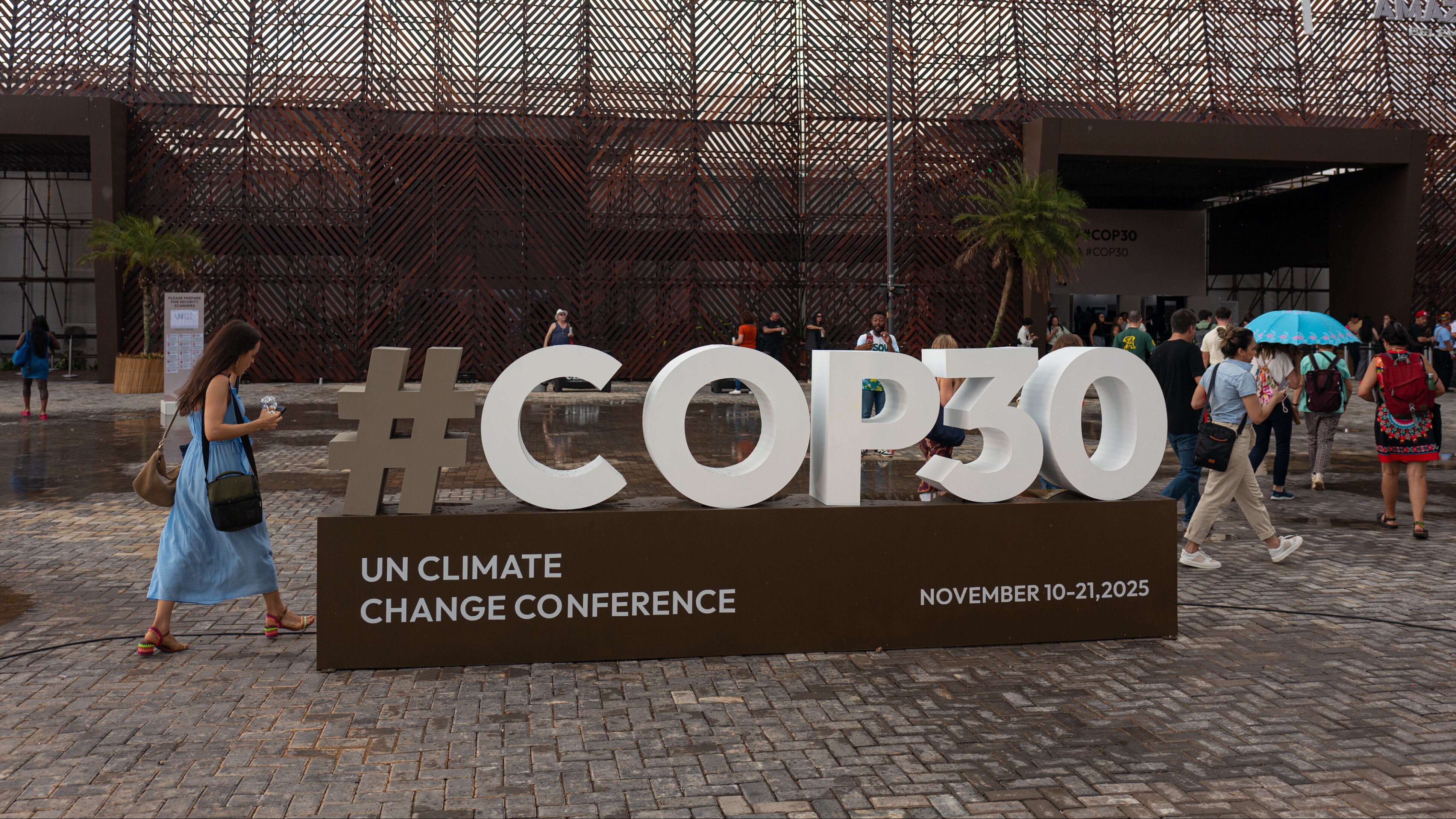 Delegates waited outside in Belém's characteristic afternoon rain, some slipping into cafes and huddling under trees to keep dry.