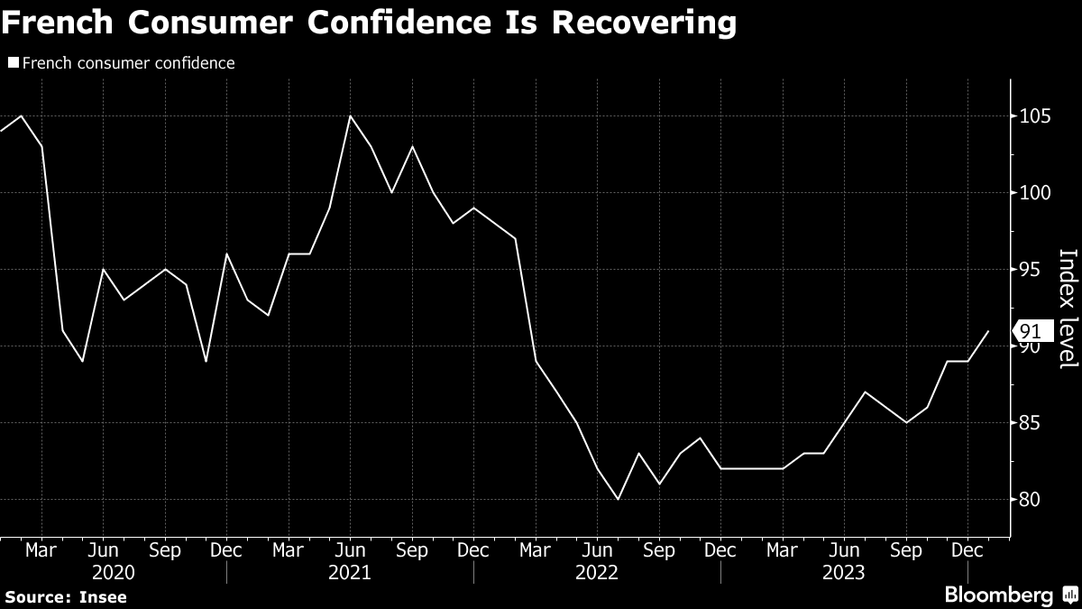 (Bloomberg) -- France narrowly escaped a recession in the latter half of 2023 as exports offset weaker demand at home — offering hope that the euro zone can also dodge a downturn.