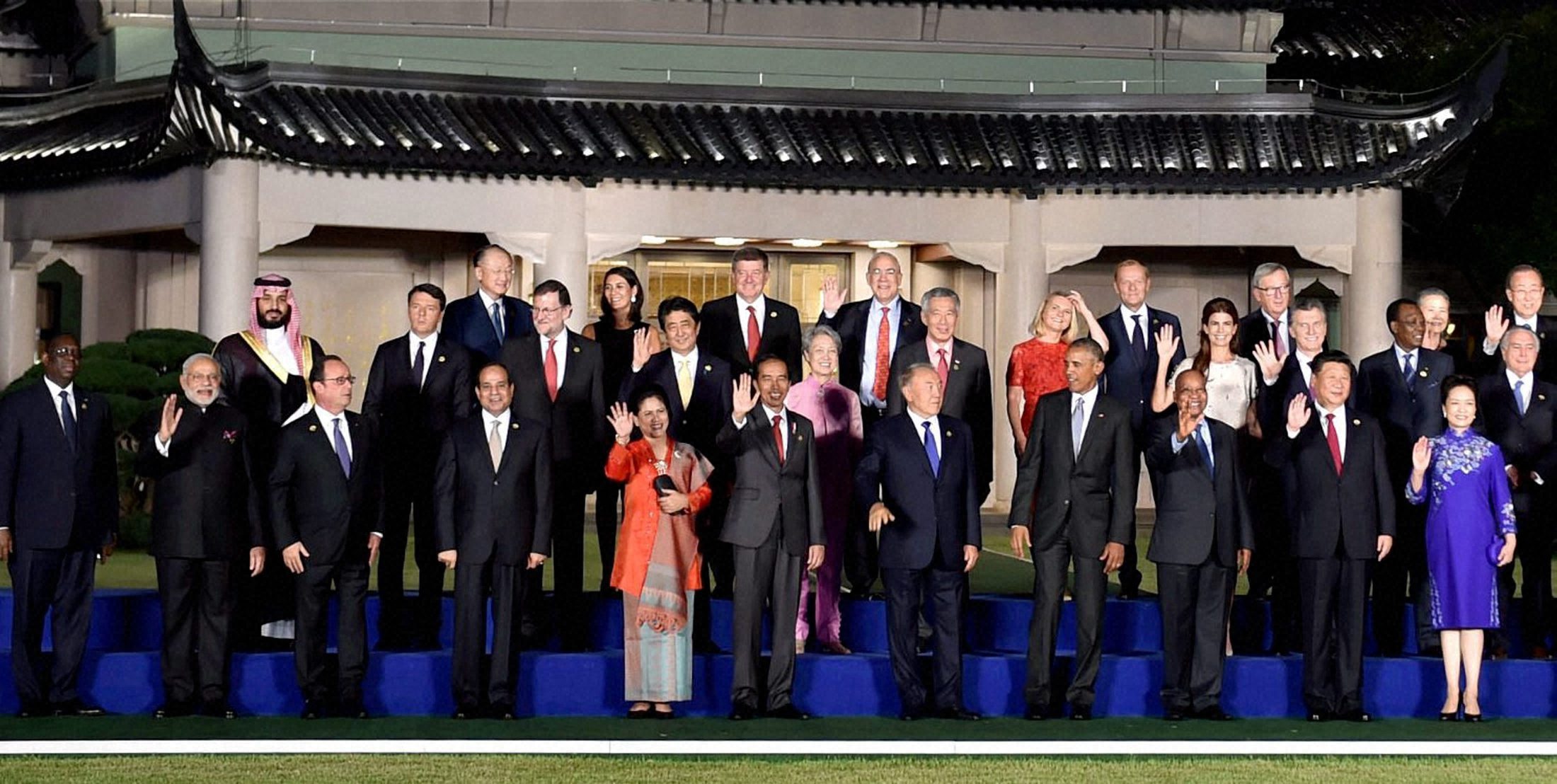 G20 leaders and their spouses in a group photo during the G20 Summit in Hangzhou, China on Sunday. (Photographer: Vijay Verma/PTI)
