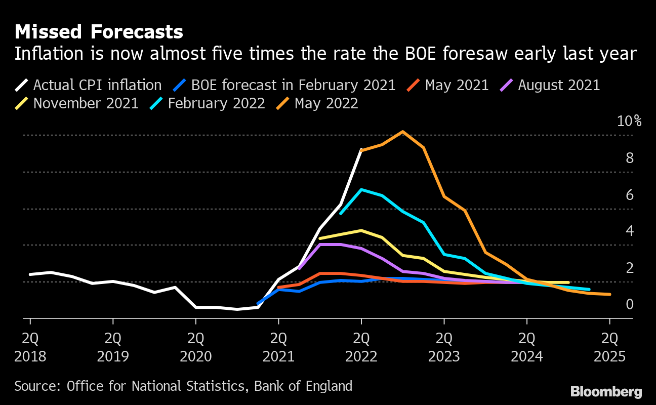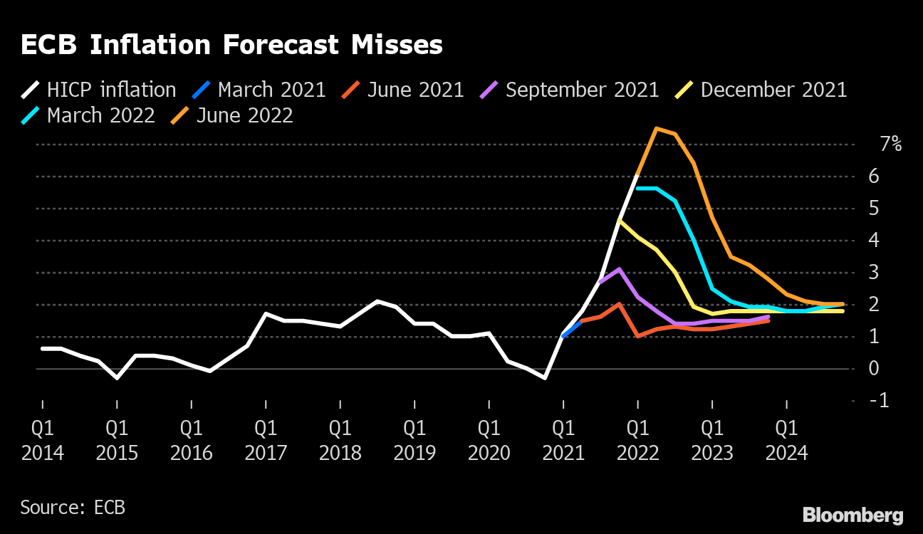 The Federal Reserve and most counterparts are now racing to make up for lost time by raising interest rates the most in decades. That means borrowing costs may end up higher than if the hiking started sooner. And the record of failure on forecasting could undermine confidence in the current assurances that a soft landing is still possible.