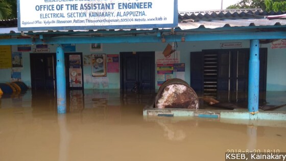 During the July 2018 flood that hit parts of Alappuzha, including Kainakary, the damage had not been severe, said Anandan NK, assistant engineer, electrical section in Kainakary. “Water rose a foot inside the office in July,” he said. “But in the August flood, water rose five-feet inside the office and the strong currents damaged installations.”