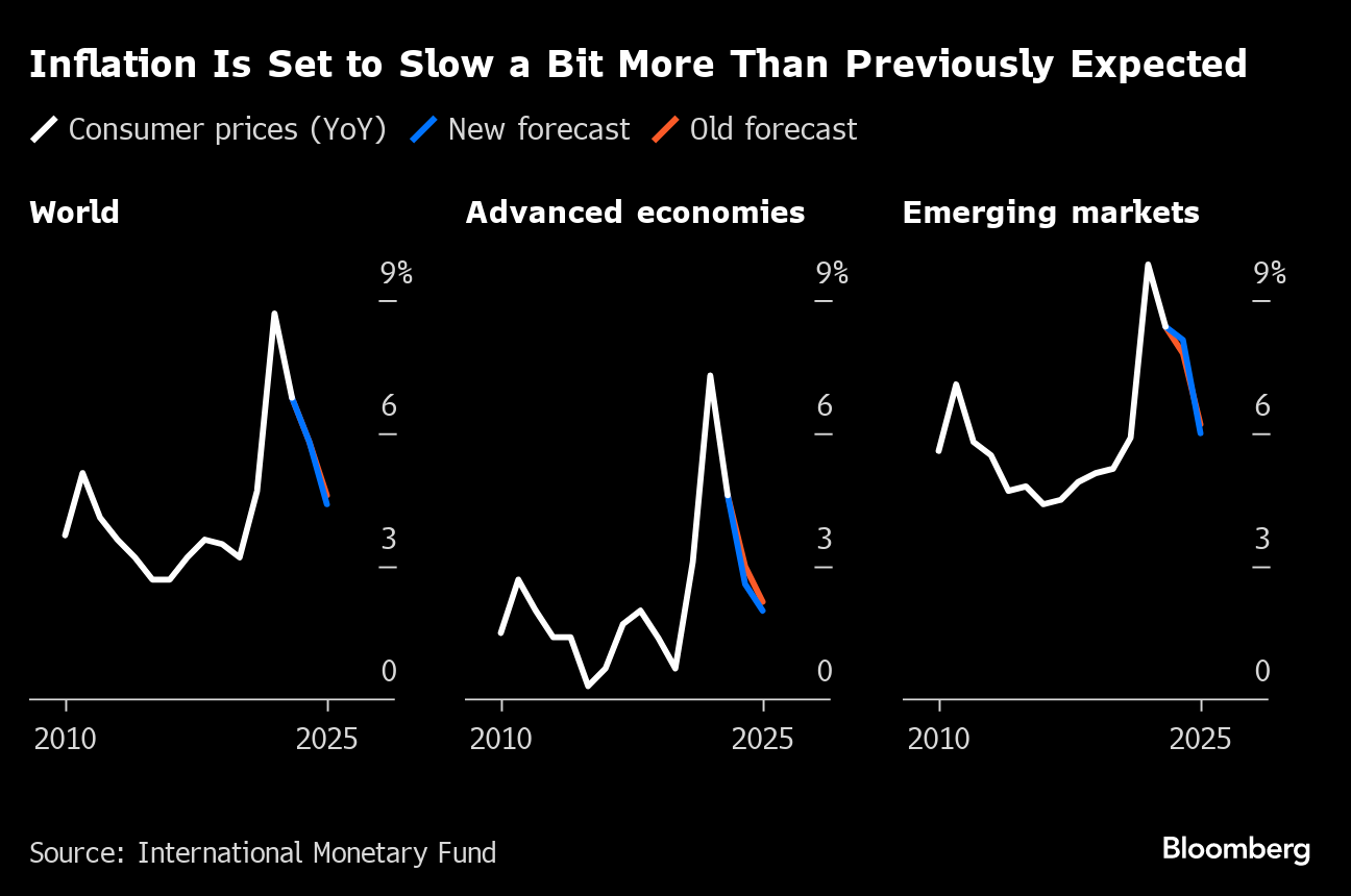 The IMF said that inflation in the fourth quarter cooled more than projected as energy prices eased, and that it expects the deceleration to continue through 2025, bringing global inflation down to 4.4% from 6.8%. Advanced economies are estimated to see faster disinflation than emerging markets.