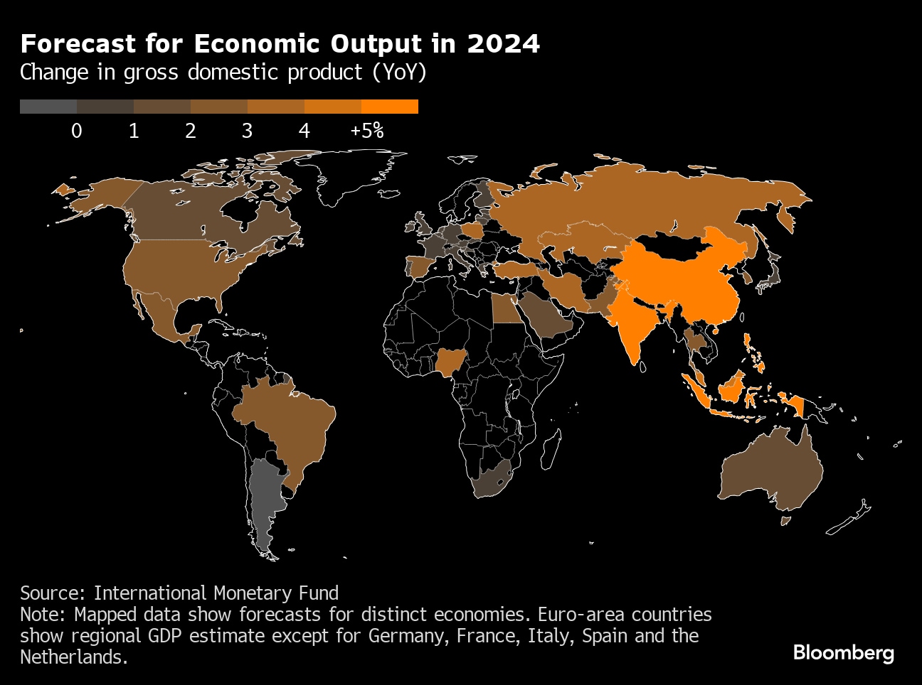 The biggest growth downgrades went to Saudi Arabia, cut by 0.9 ppt to 1.7% amid oil output reductions coordinated with OPEC+, and Argentina, down 0.7 ppt to a 3.5% contraction as President Javier Milei enacts severe spending cuts.