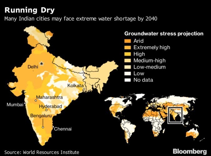 At least 20 Indian cities, including New Delhi, are set to run out of groundwater as early as 2020 if measures aren't taken, according to government think-tank NITI Aayog.