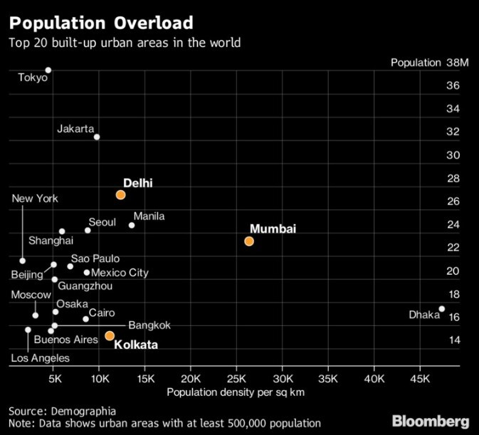 (Bloomberg) -- The effects of unbridled urbanization are inescapable in India's capital city. Smog blankets landmarks like India Gate in winter, delaying flights at the airport due to poor visibility. Traffic jams are part of the daily routine and slums abut New Delhi's luxury hotels and private mansions, testifying to a growing wealth divide and chronic housing shortage.
