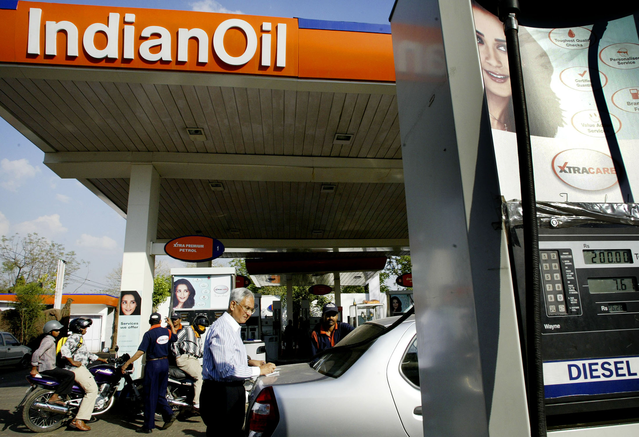 Indian Oil Gas Station in New Delhi, India (Photographer: Amit Bhargava/Bloomberg News)