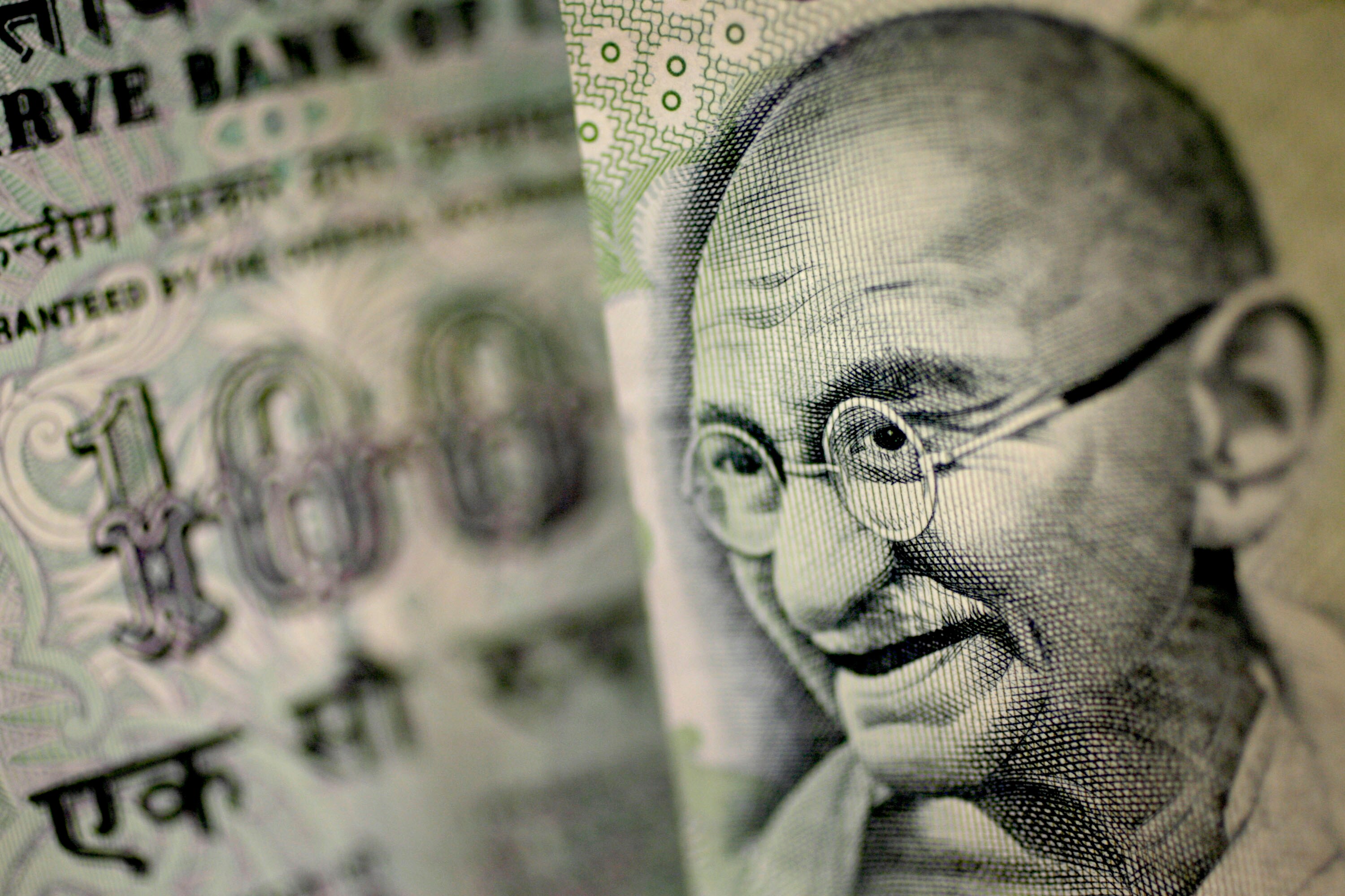 Mahatma Gandhi depicted on a Rs 100 note. (Photographer: Scott Eells/Bloomberg News)