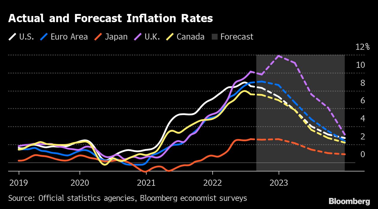After the worst price shock in decades, the speed at which relief arrives will vary, with Europe in particular still struggling. But for the world as a whole, analysts at JPMorgan Chase & Co. estimate that consumer-price inflation will fall to 5.1% in the second half of this year — roughly half of what it was in the six months through June.