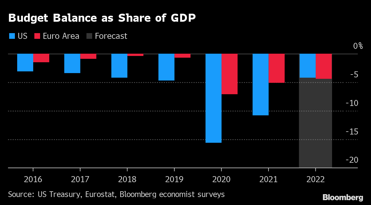 One likely result: the euro-area's combined budget deficit is forecast to be bigger than America's this year – the first time that's happened since before the Great Recession.