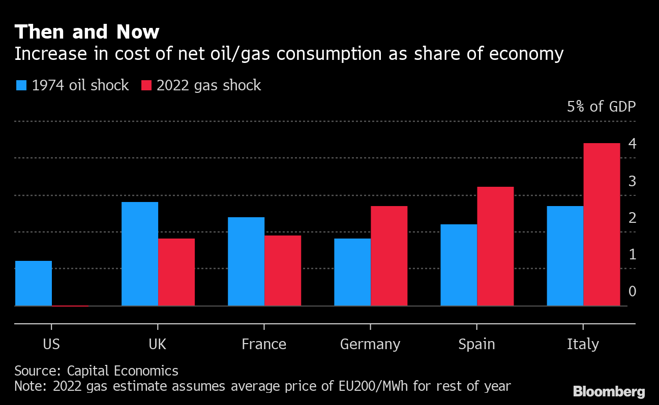 That divide shows up in fiscal policy too. The US has been withdrawing stimulus, but Europe is having to add more of it, with energy subsidies to cushion the blow and make sure households don't freeze -- and businesses don't shut down -- in the coming winter.
