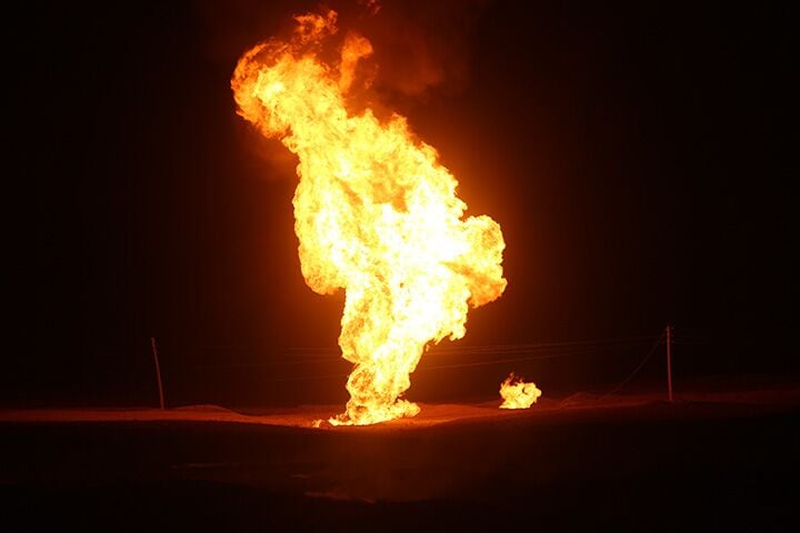 A natural gas pipeline explosion outside Boroujen in the western Chaharmahal and Bakhtiari province, Iran, on Feb. 14, 2024. Photographer: Reza Kamali Dehkordi/Fars News Agency/Getty Images