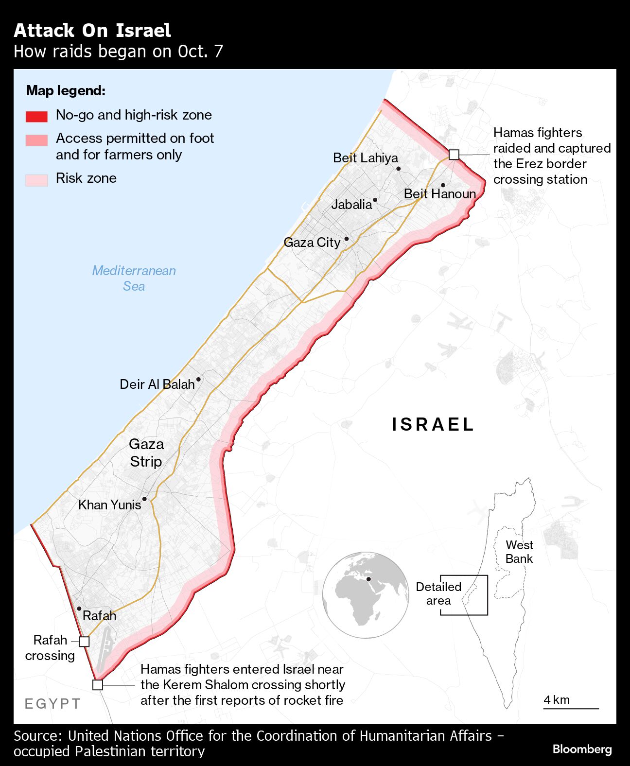 (Bloomberg) -- The Israel Defense Forces said they killed armed infiltrators entering from neighboring Lebanon on Monday, the third day of fighting since Hamas militants from Gaza launched a surprise attack against Israel.