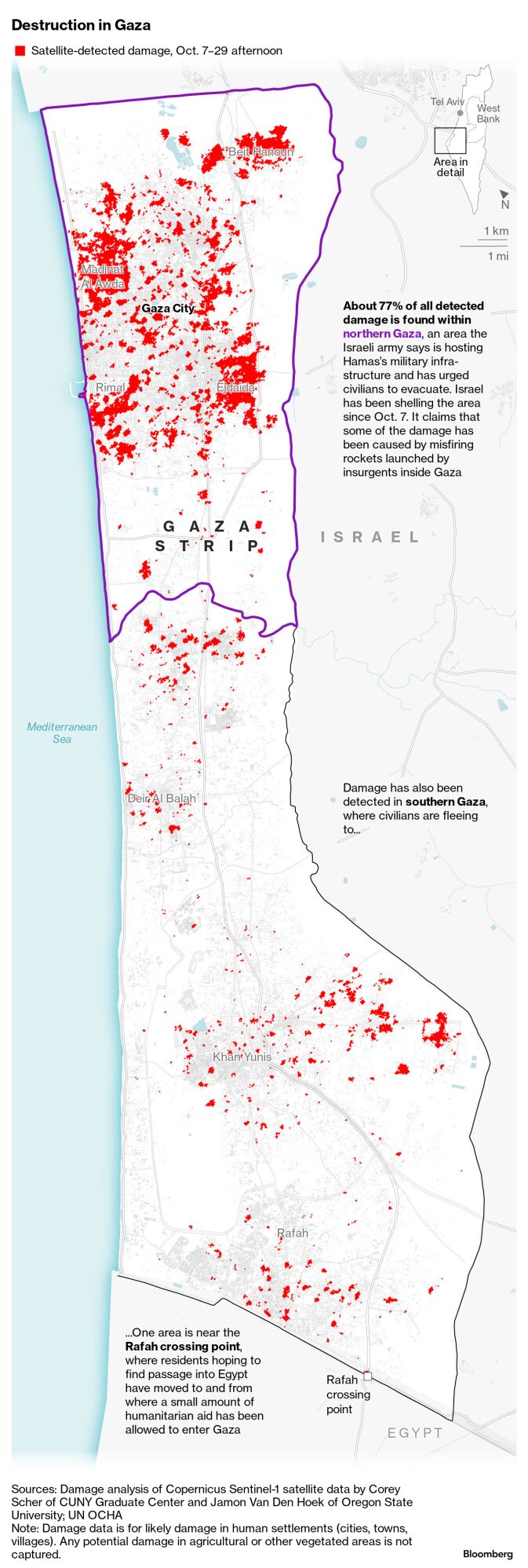 Most of the ground operations are concentrated around Gaza City in the north of the territory. Israel has urged Palestinian civilians to evacuate to the south, and has said 800,000 of them have done so.