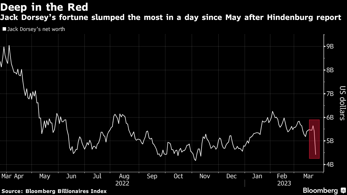 Block Inc. co-founder Jack Dorsey's net worth was hammered after Hindenburg Research's latest report, which alleged the payments company ignored widespread fraud.