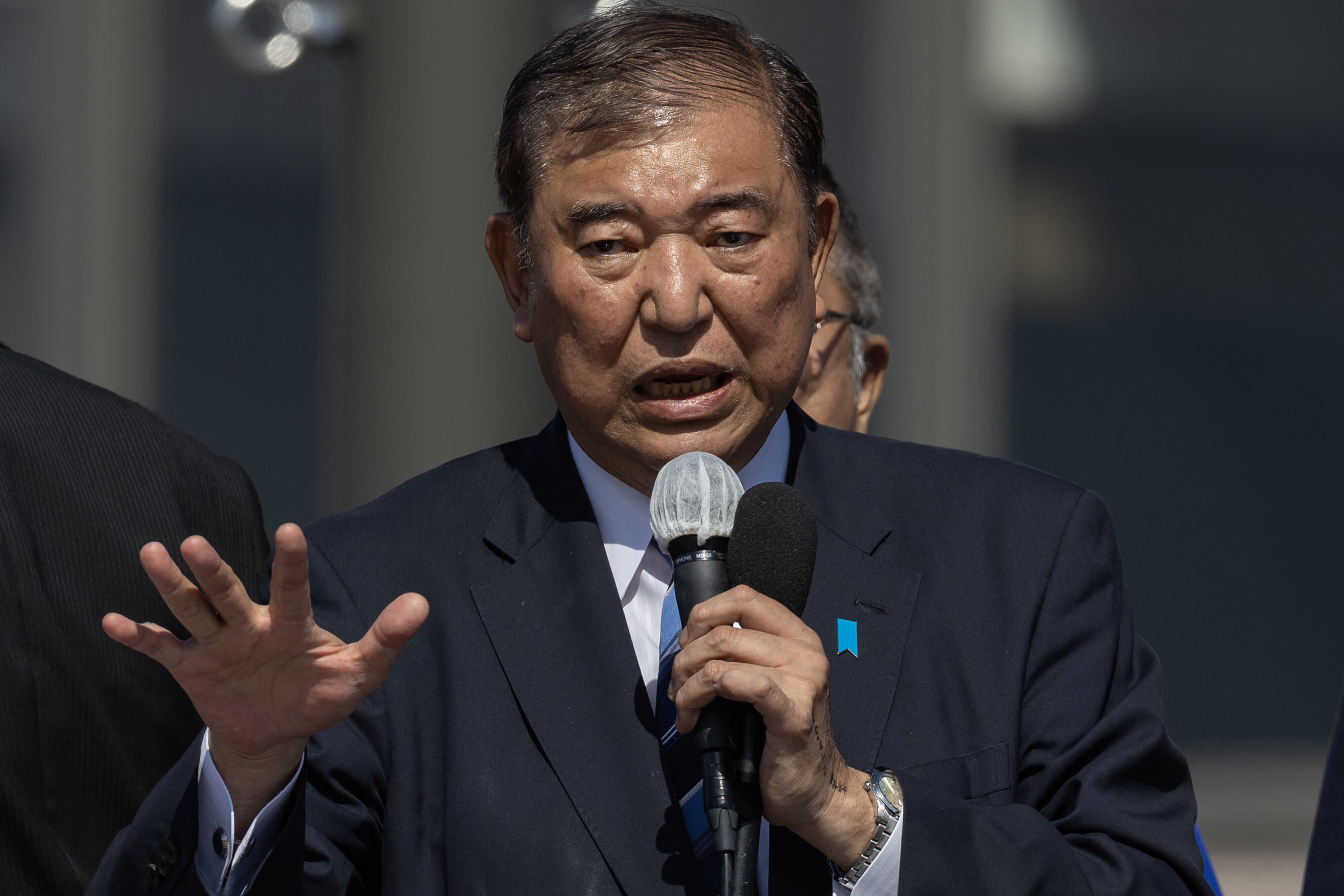 Shigeru Ishiba gives a campaign speech in Osaka on Oct. 20.