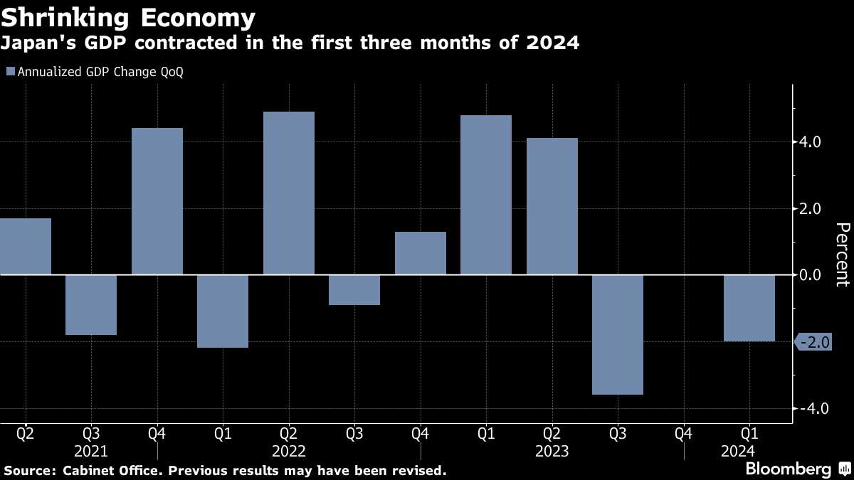“Japan's first-quarter GDP shrank more than the market expected due to one-off factors — and won't dissuade the Bank of Japan from normalizing policy.”