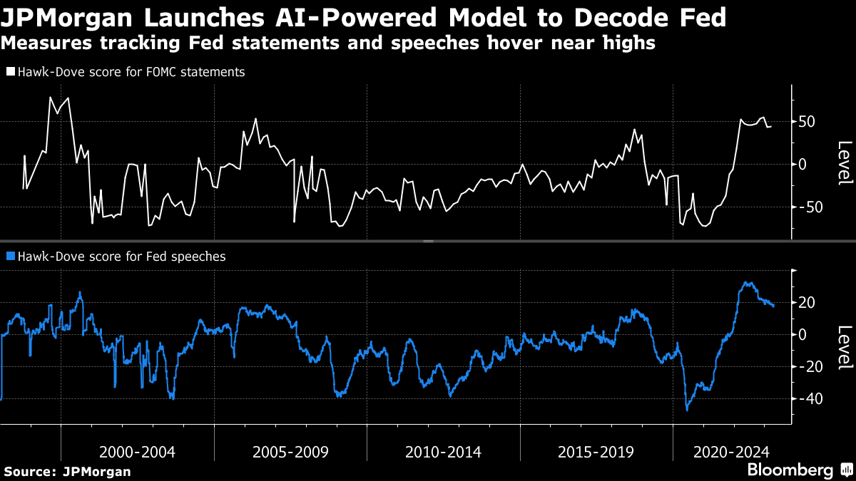A week before the Federal Reserve's next meeting, JPMorgan Chase & Co. unveiled an artificial intelligence-powered model that aims to decipher the central bank's messaging and uncover potential trading signals.