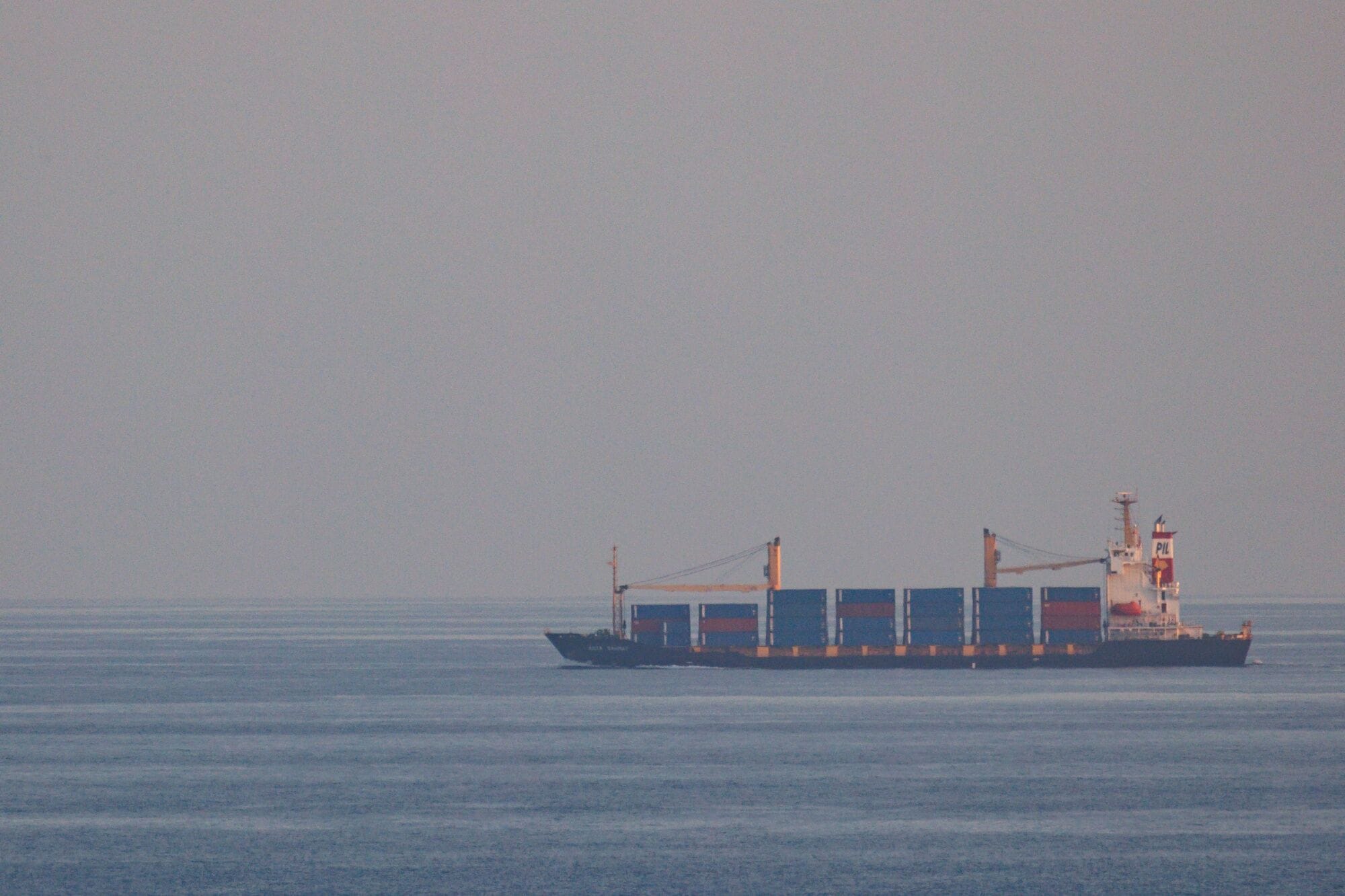 OBOCK, DJIBOUTI - JANUARY 19: The container ship, Kota Rahmat - with the destination 'VSL NO LINK ISRAEL' - approaches the Bab-el-Mandeb strait on January 18, 2024 in Obock, Djibouti. Many cargo ships crossing into the Red Sea are declaring that they have no links to Israel to avoid being targeted by Yemen’s Houthi rebel groups. Attacks on commercial ships by Yemen's Houthi rebel group, who say they are acting in protest of Israel's war in Gaza, have imperilled a vital global shipping route through the Bab-el-Mandeb strait that lies between Yemen and Djibouti and connects the Gulf of Aden and Red Sea. The disruption has forced more shipping companies to divert around the Horn of Africa, upending supply chains and increasing costs. (Photo by Luke Dray/Getty Images)