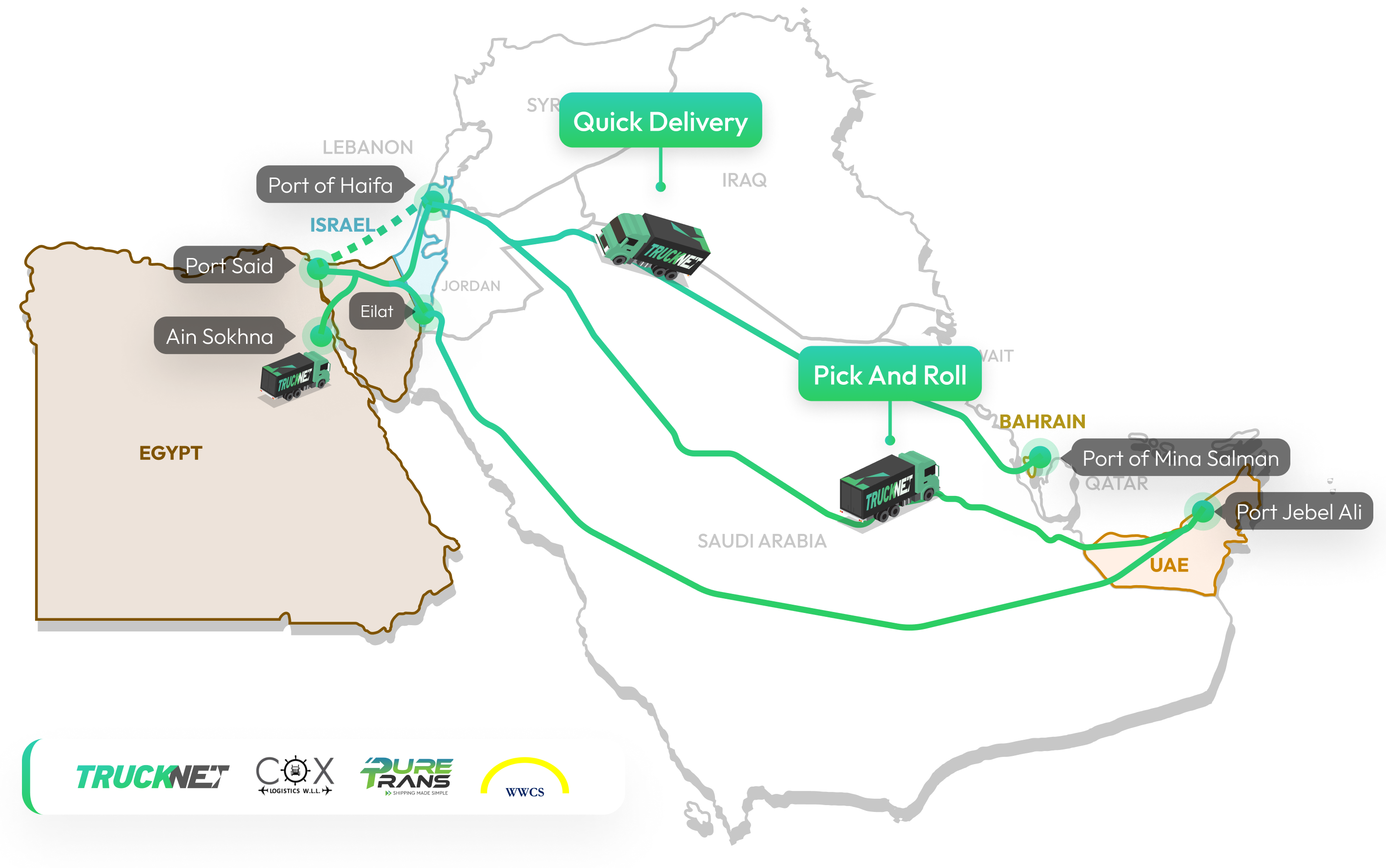 Trucknet is running its route with companies including Dubai's PureTrans FZCO, Bahrain's Cox Logistics and WWCS in Egypt, according to its website. Test runs from the Gulf region to Israel started earlier this year, and when the Houthis began to threaten ships in the Red Sea following Israel's war with Hamas, Trucknet was ready to push ahead with its plan.