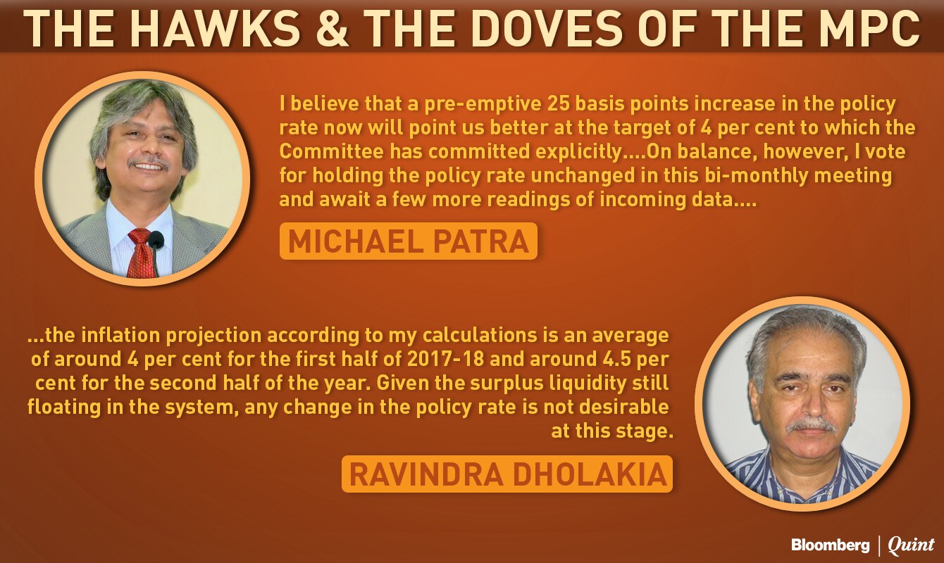 Patra, executive director at the Reserve Bank of India (RBI), in his statement showed a leaning towards a rate hike although he eventually voted in favour of a pause. Patra cites a need to move inflation closer to the 4 percent medium-term target set under the new monetary policy framework. This, in his view, could warrant a 25-basis-point hike, if not now, then once the impact of transitory factors (such as demonetisation) on data abates.