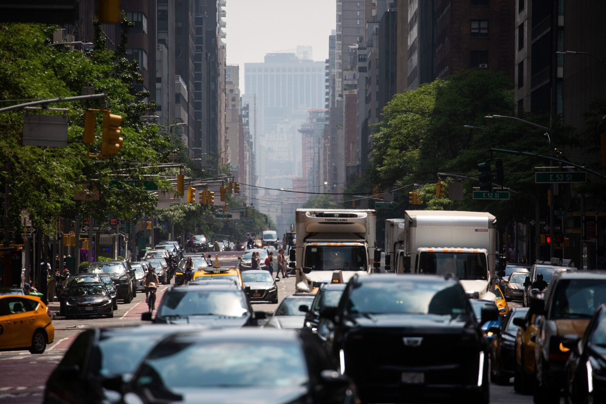 Traffic in the Midtown neighborhood of New York, US, on Saturday, June 17, 2023. New York City's congestion pricing plan for the central business district is expected to get final approval this month.