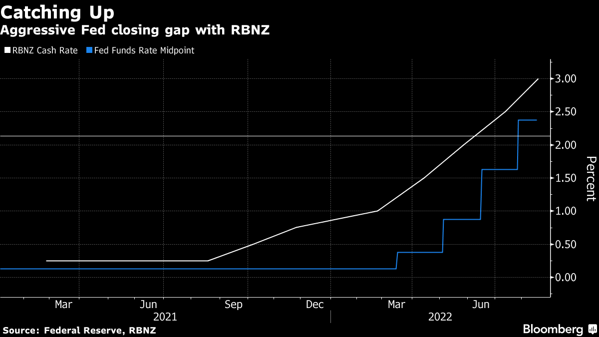 New Zealand's 2.75 percentage points of hikes in the past 10 months are the most aggressive tightening cycle it has delivered since pioneering inflation targeting more than 30 years ago. It currently exceeds the Federal Reserve and Bank of Canada's 2.25 points apiece.