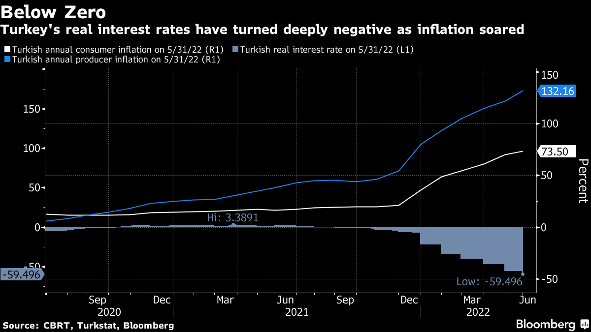 In Istanbul, the country's commercial center, retail inflation accelerated to an annual 94% in June. Producer prices, an early indicator of inflation, have been growing by more than 100% for four straight months.