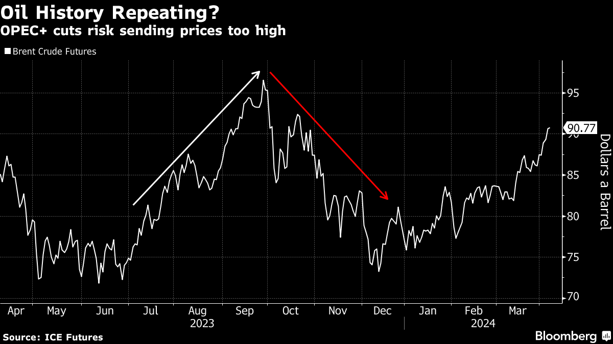 Last April, crude traded in the high $80s as OPEC+ launched new supply cuts despite resilient fuel demand and geopolitical tensions over Russia's invasion of Ukraine. Analysts predicted a return to $100 a barrel, which nearly arrived a few months later.