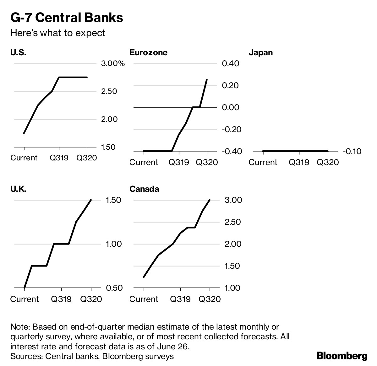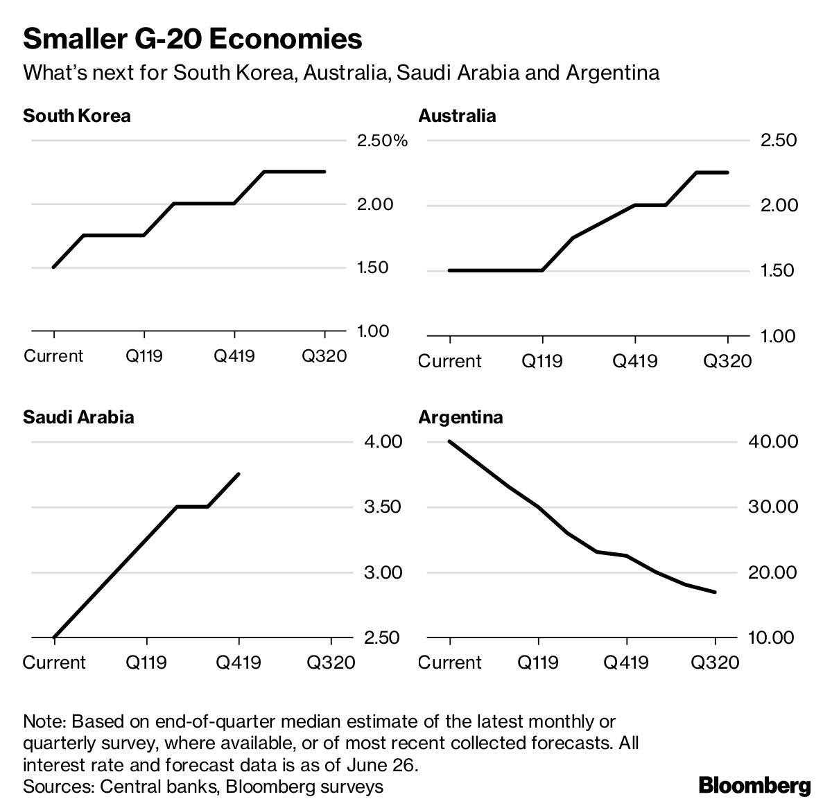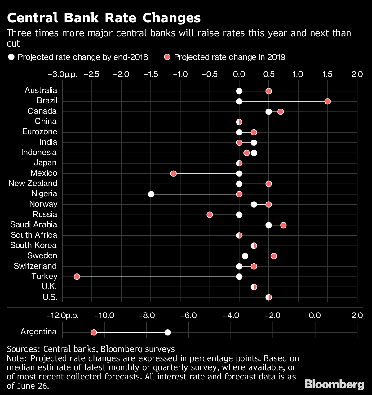 Bloomberg Economics took a look at 22 of the top central banks, which together set policy almost 90 percent of the world economy. We outline what they've done so far this year and attempt to analyze what they will do next.