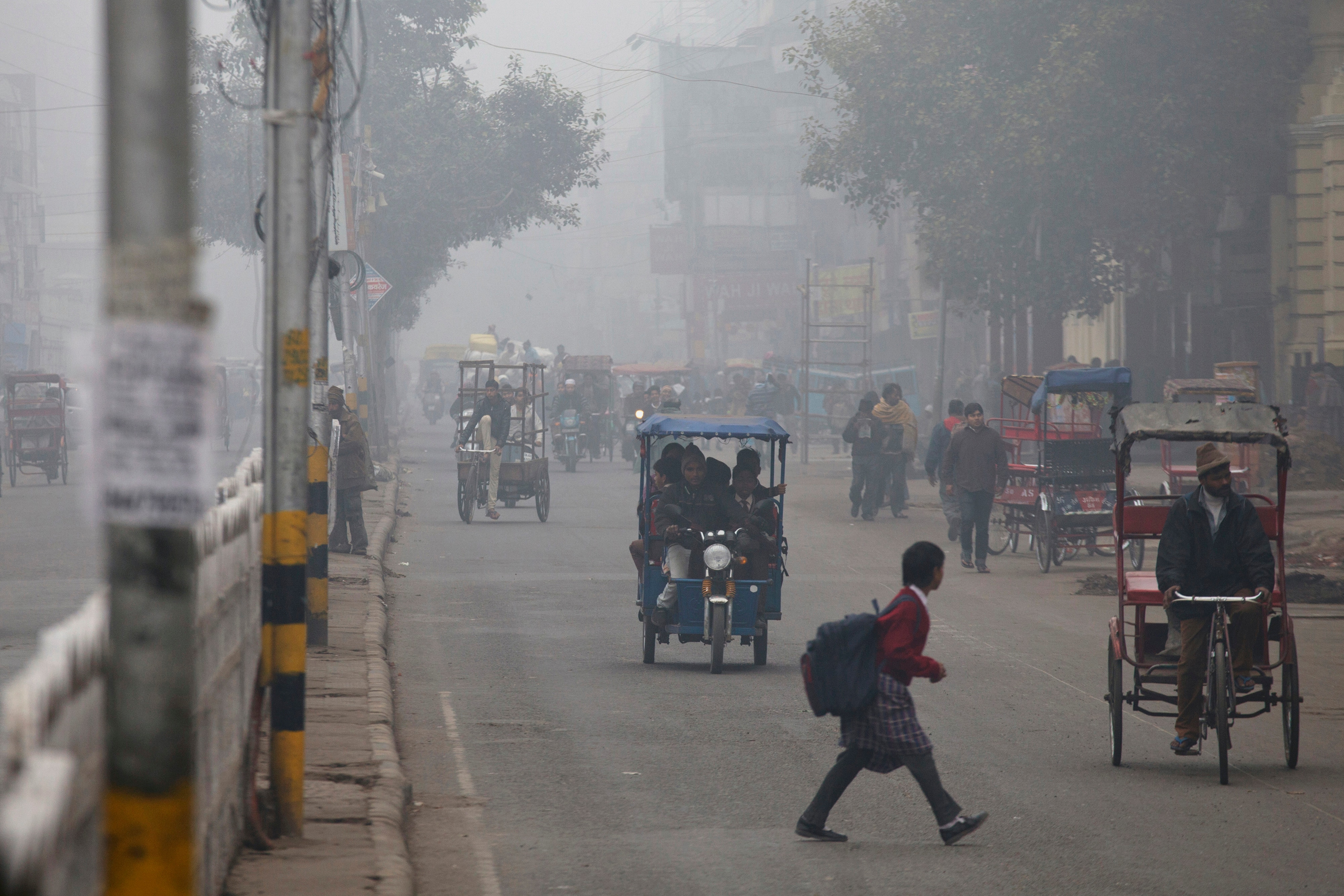 Traffic make way in haze mainly caused by air pollution in Delhi. (Photographer: Kuni Takahashi/Bloomberg)