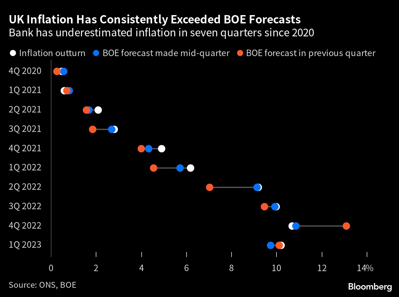 The findings in an Ipsos poll carried out for the BOE last month pile further pressure on Governor Andrew Bailey and his colleagues as they confront an inflation rate that is over four times the 2% target — even after the most aggressive series of interest-rate increases since the late 1980s.