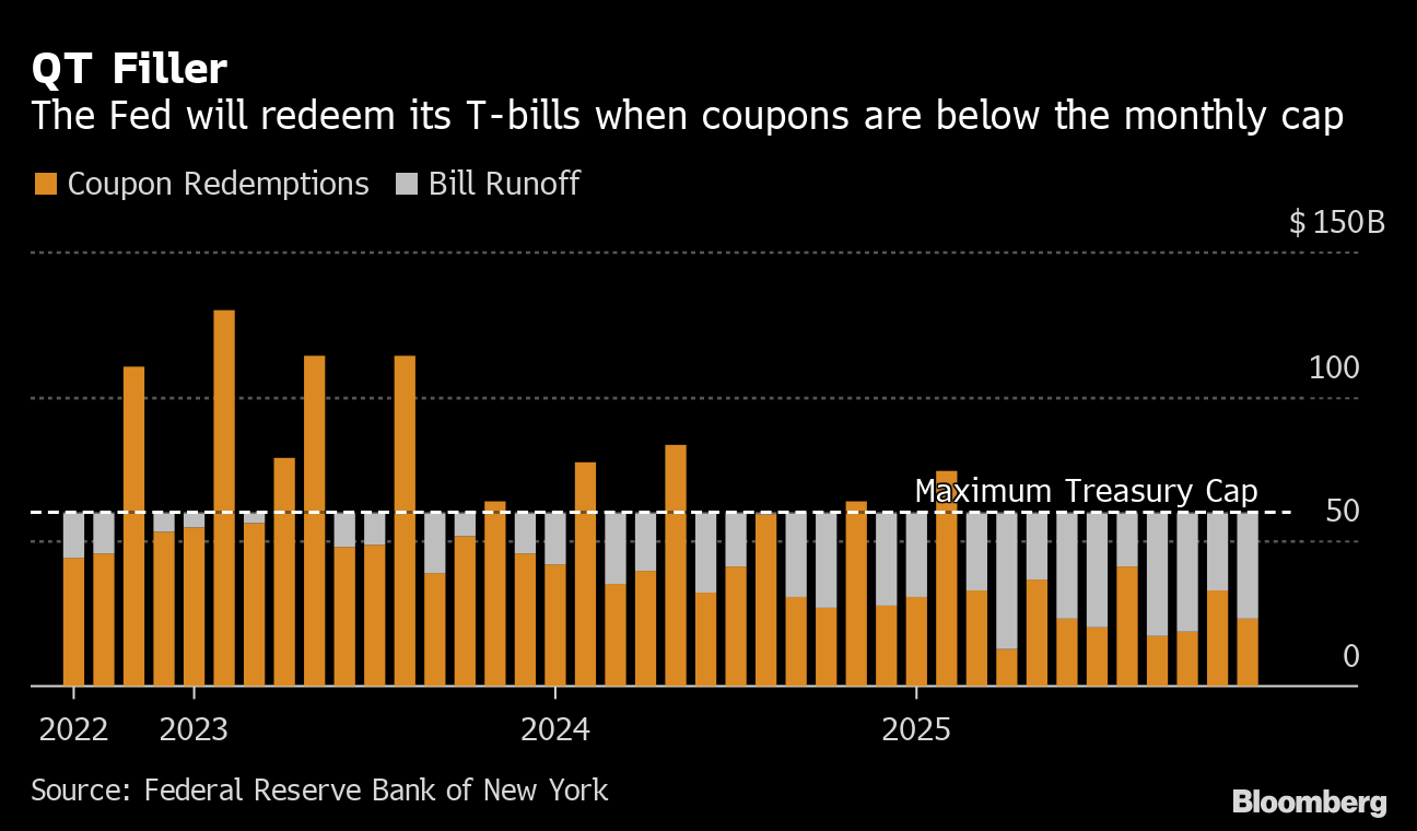 “This is the first time the Fed is allowing bills to run off their balance sheet, three years after they started buying them quickly due to a reserve shortfall,” said TD Securities strategist Gennadiy Goldberg. “QT is hitting its full stride.”