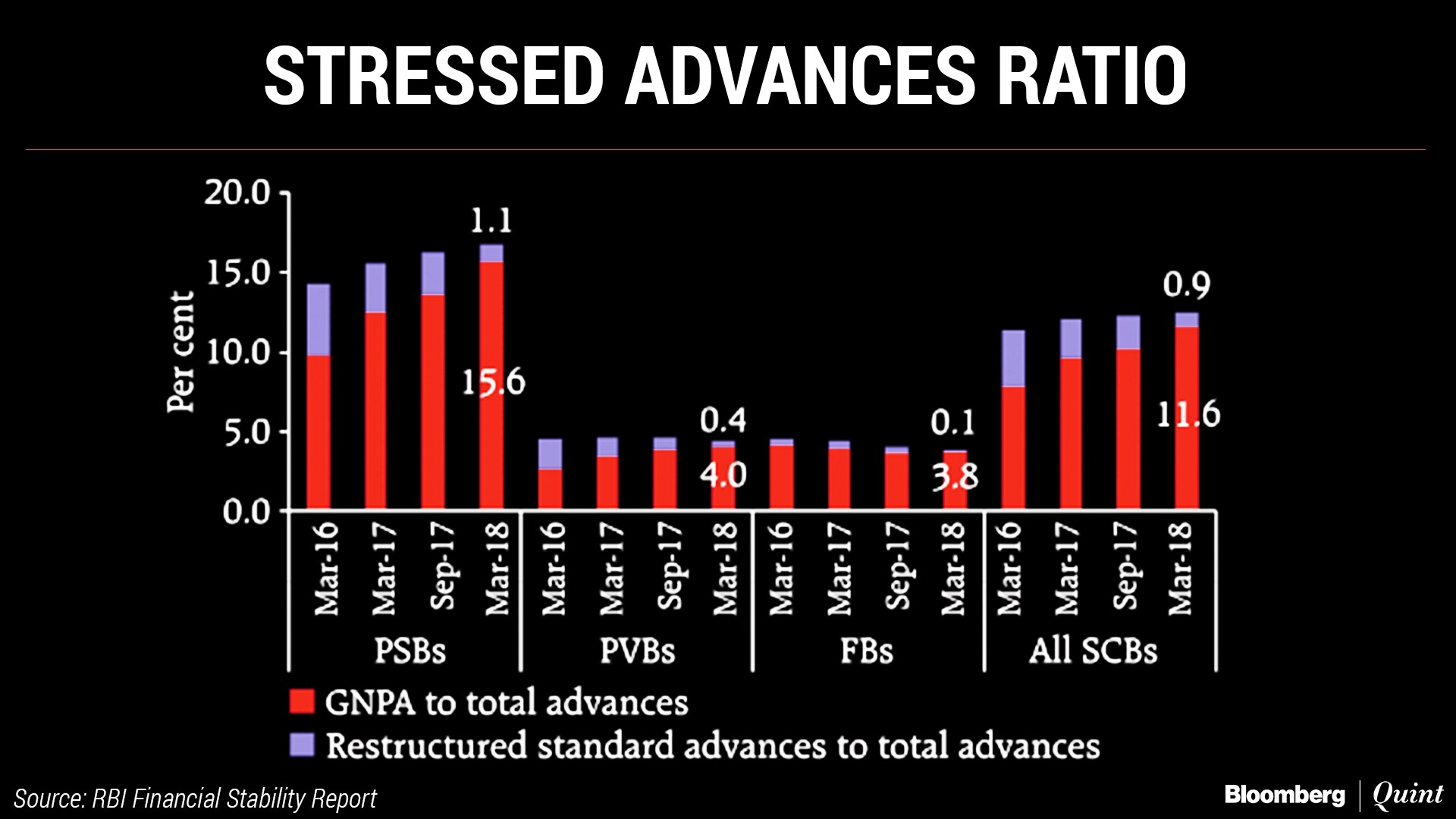 Following the detailed review started by the RBI, banks saw their NPA figures shoot up drastically. Between the quarter ended September 2015 and the quarter ended March 2018, gross NPAs of all listed banks have gone up from Rs 3.4 lakh crore to Rs 10.2 lakh crore, shows data compiled by BloombergQuint.