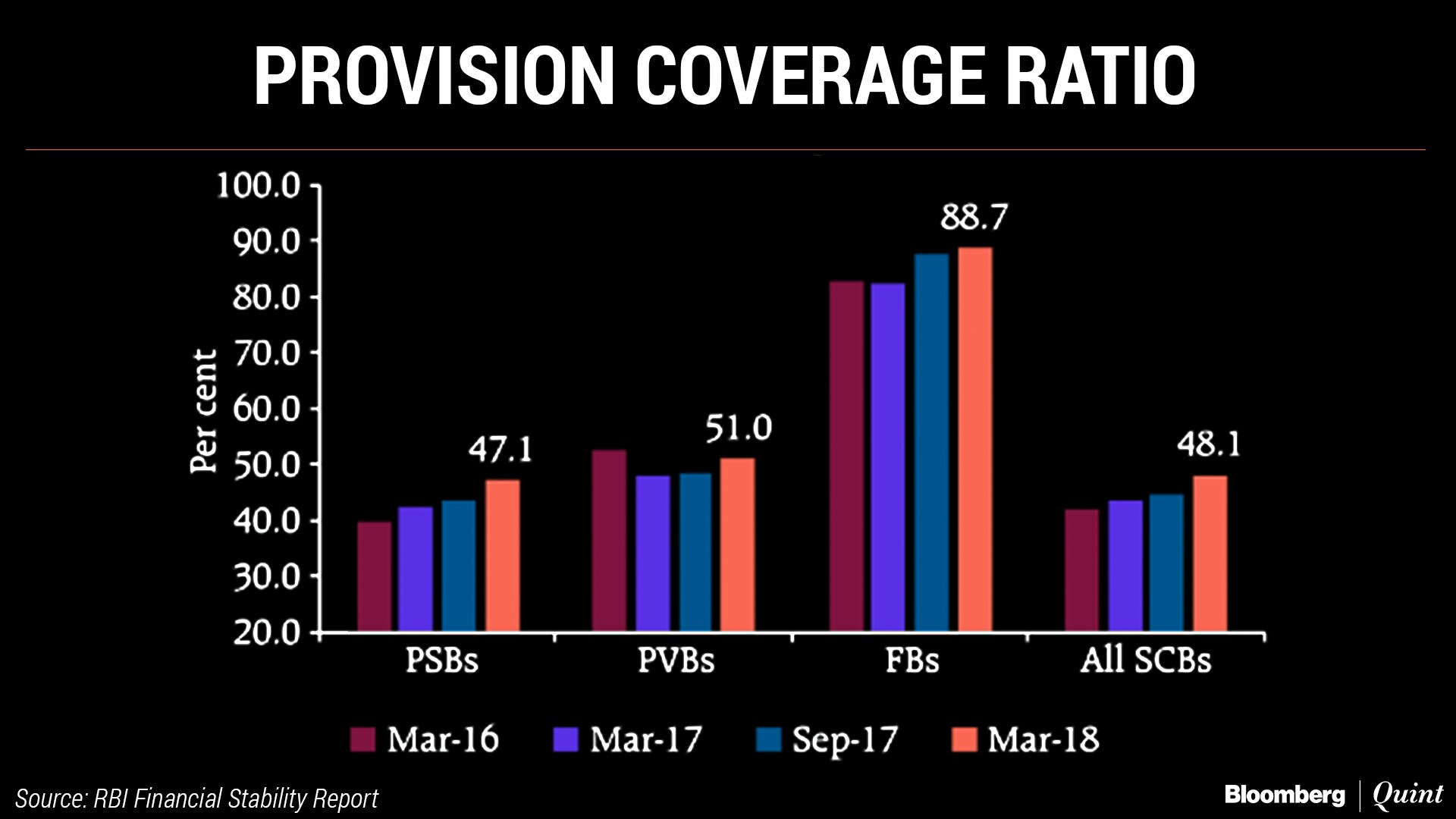 While provisioning levels vary across individual banks, the system-level provision coverage ratio is still on the lower side. As of March 2018, this ratio stood at around 48 percent for the entire banking sector, showed data in the RBI's Financial Stability Report.