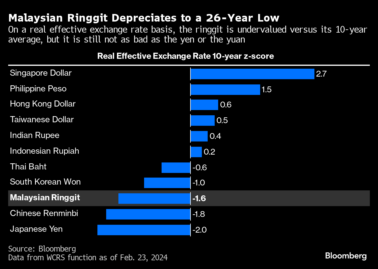 Anwar has conceded that the ringgit's fall was “concerning” and the government was monitoring the situation. The currency has slid by about 4% so far in 2024 as China's sluggish economy hurt exports from Malaysia. Some analysts have said there is further risk the currency will weaken to record lows.