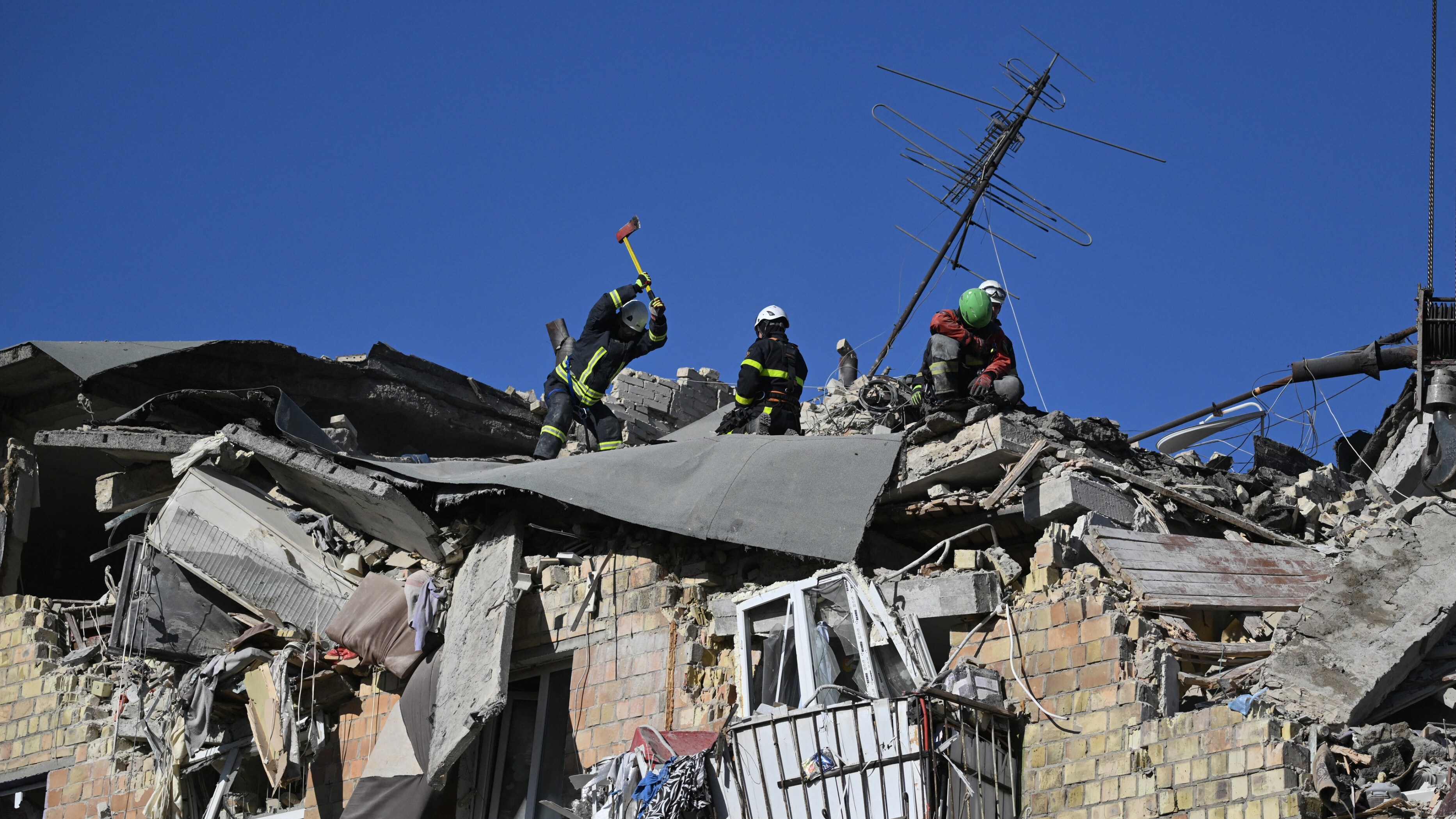 “Russians destroyed the whole block in a five-storied building,” Kyiv city military administration chief Tymur Tkachenko said on Telegram. “Rescuers are trying to free people from the rubble.”