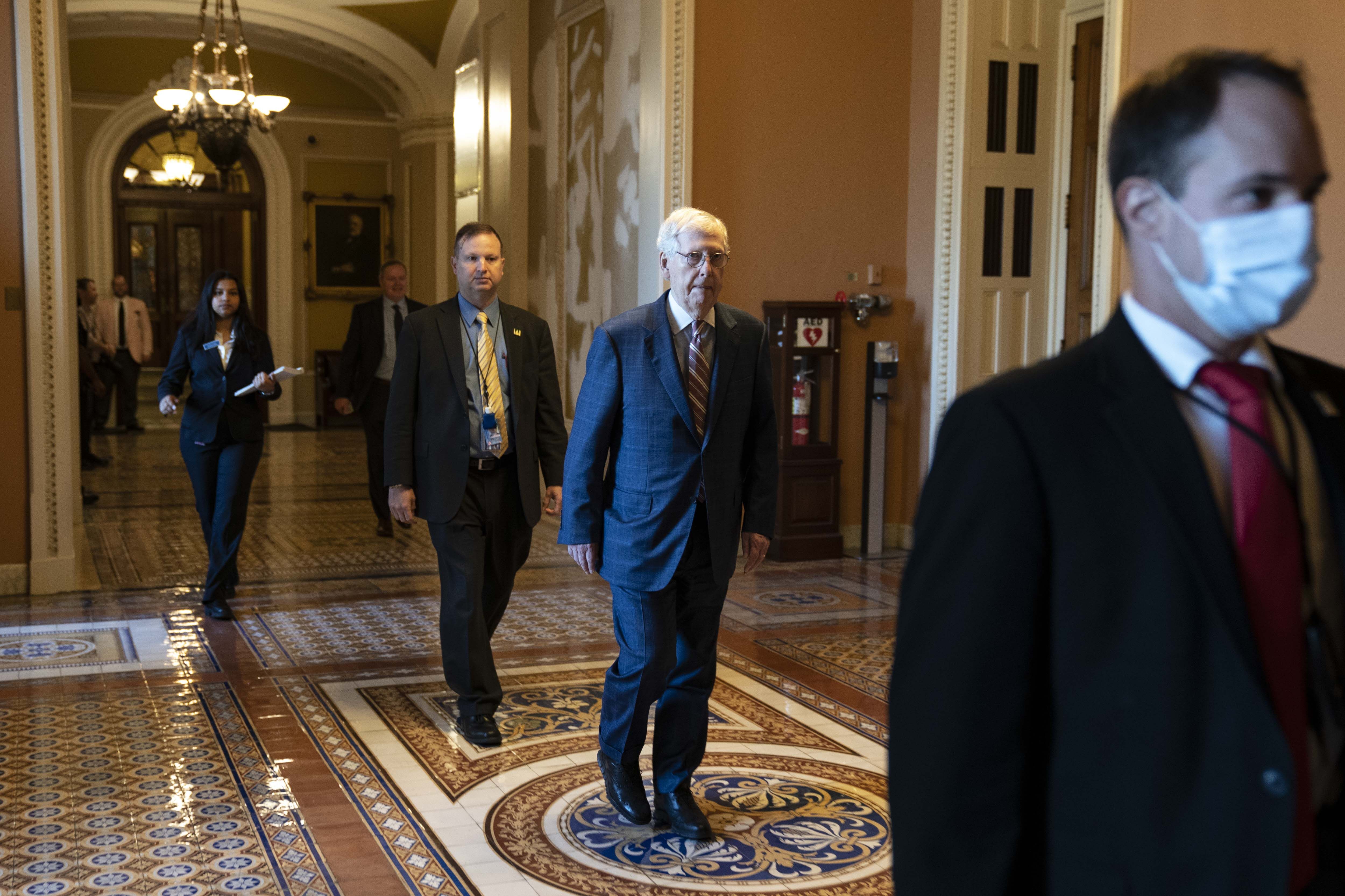Facing a revolt from some hawkish Republicans, Minority Leader Mitch McConnell indicated more Pentagon dollars could come later on, and said national security funding remains an “urgent” priority.