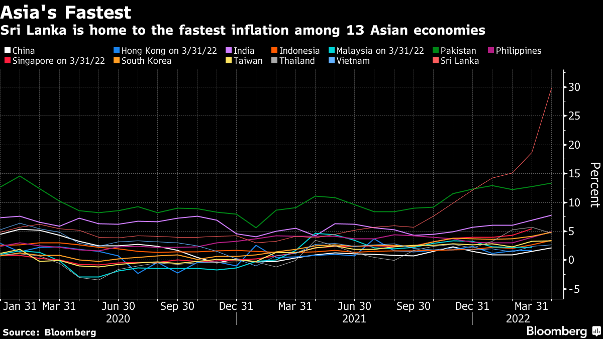 Governor Nandalal Weerasinghe said retail inflation, which quickened to almost 30% in April, will accelerate further amid a shortage of dollars to pay for imports to ease shortages of everything from food to fuel. He said there are signs of easing in underlying inflation that strips out volatile items.