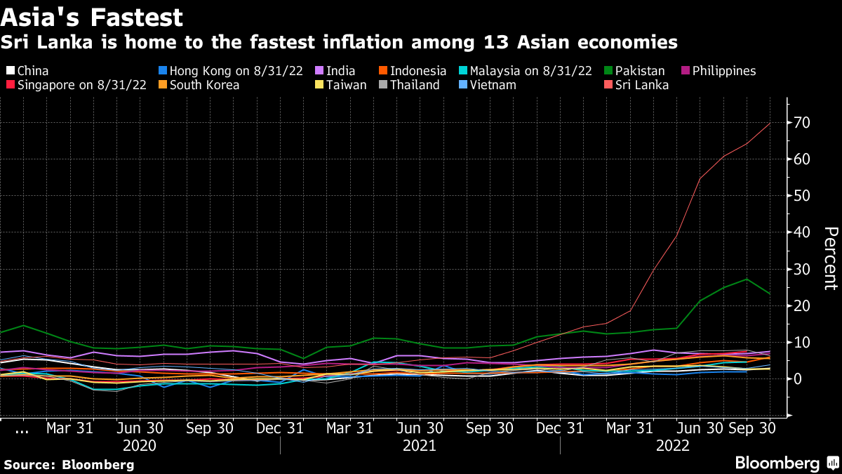 (Bloomberg) -- Sri Lanka's 70% inflation is hitting its peak as crippling shortages ease and bailout funds look within reach, yet it's far from putting the central bank governor at ease.