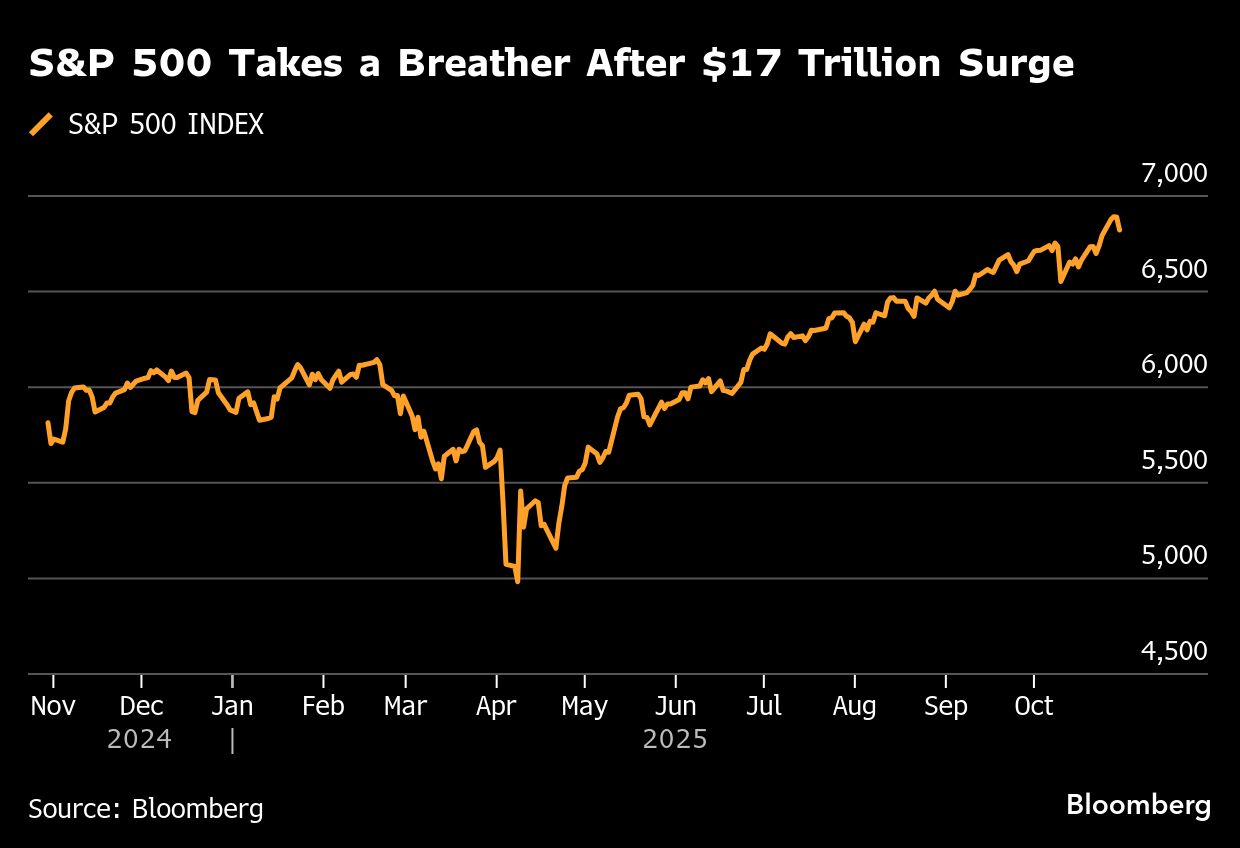 Following a pause in the S&P 500's roughly $17 trillion surge, the gauge climbed on solid outlooks from Amazon.com Inc. and Apple Inc. To be fair, not every megacap gained. And the iPhone maker's advance sputtered as a sales drop in China tempered excitement for what promises to be a busy holiday season. Bonds steadied after a post-Federal Reserve rout. The dollar rose.