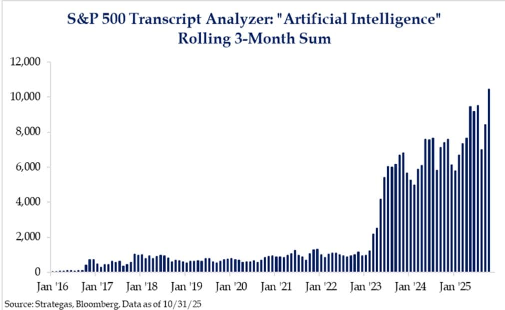 Ryan Grabinski at Strategas noted that mentions of “AI” in corporate transcripts continue to accelerate.
