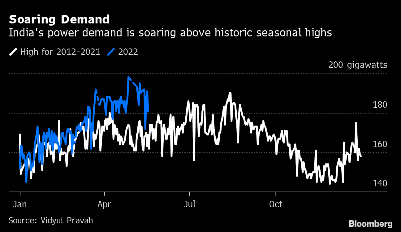 Asia's heatwave has caused hours-long daily blackouts, putting more than 1 billion people at risk across Pakistan, Myanmar, Sri Lanka and India, with little relief in sight. Six Texas power plants failed earlier this month as the summer heat just began to arrive, offering a preview of what's to come. At least a dozen US states from California to the Great Lakes are at risk of electricity outages this summer. Power supplies will be tight in China and Japan. South Africa is poised for a record year of power cuts. And Europe is in a precarious position that's held up by Russia — if Moscow cuts off natural gas to the region, that could trigger rolling outages in some countries.