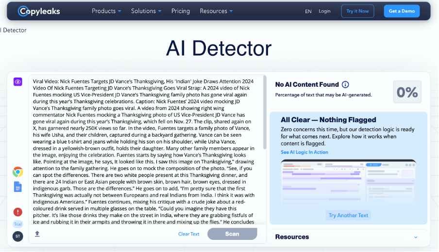 A video from 2024 showing right wing commentator Nick Fuentes mocking a Thanksgiving photo of US Vice-President JD Vance has gone viral again during this year's Thanksgiving, which fell on Nov. 27. The clip, shared again on X, has garnered nearly 250K views so far.