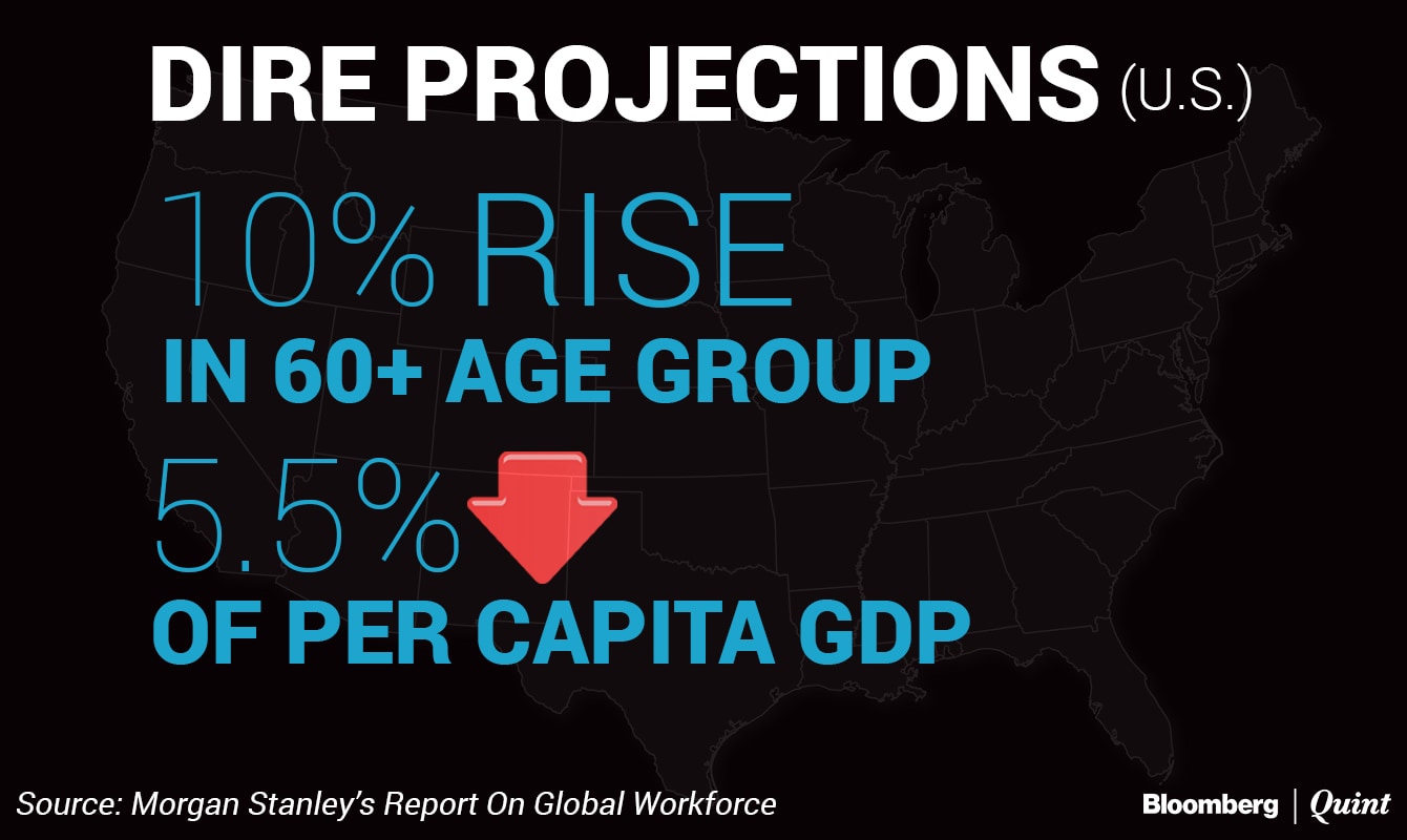 With the number of dependent people increasing, global production and growth is expected to take a hit. A 10 percent increase in the number of dependent people in U.S., pulls the country's growth by 5.5 percent, as per the report.