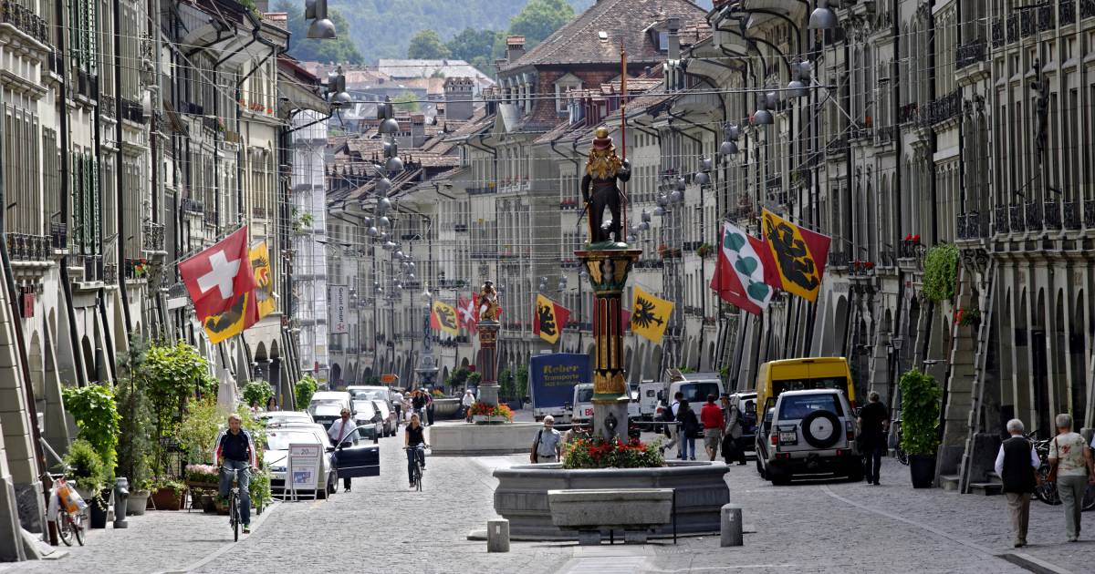 Buildings sit in the old section of the city of Bern, Switzerland. (Photographer: Adrian Moser/Bloomberg News)