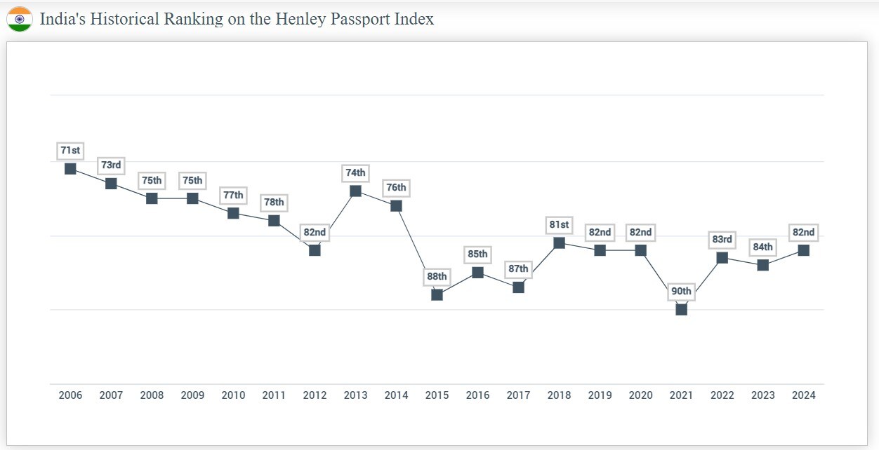 Here's India's historical ranking on the Henley Passport Index: