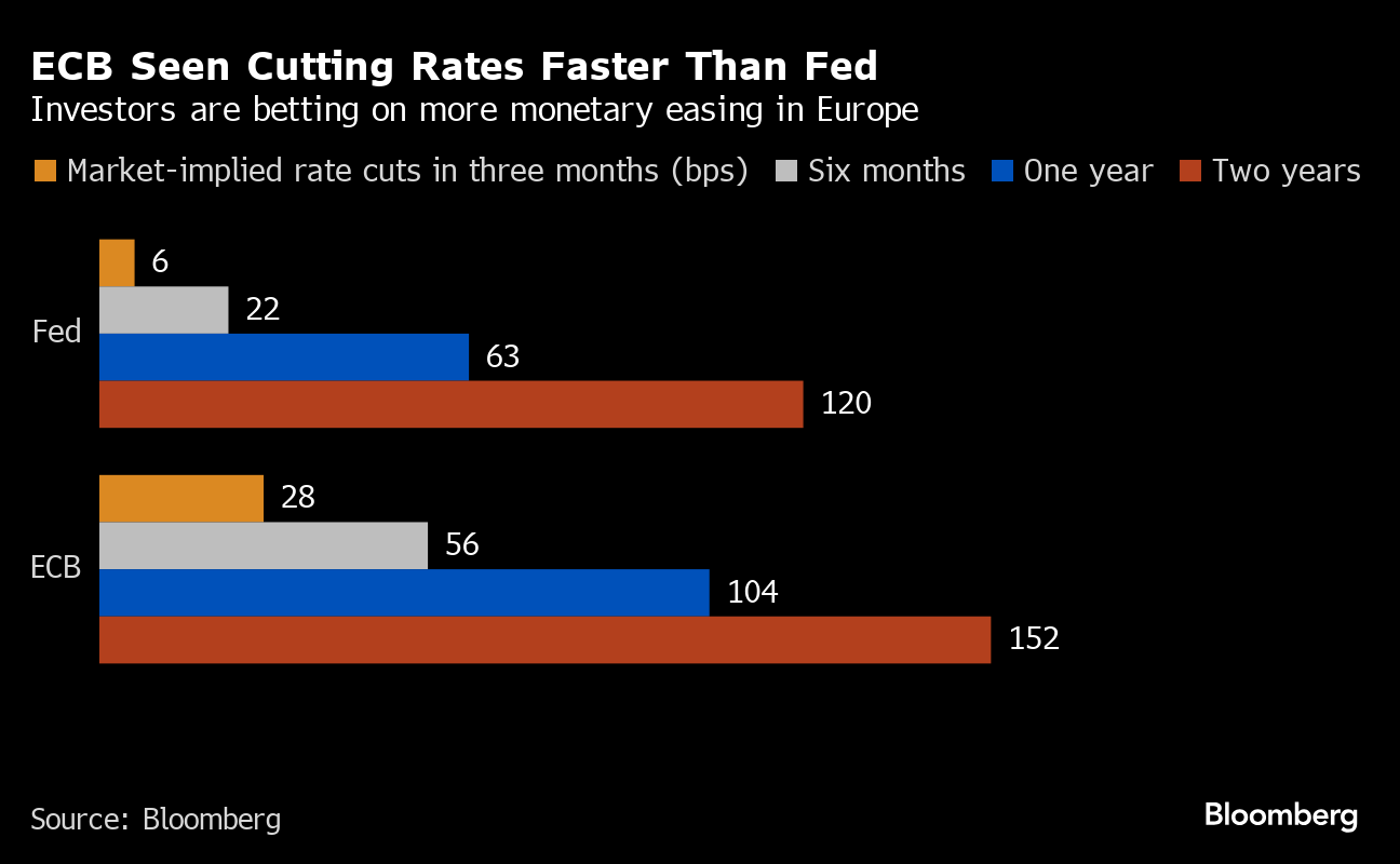 Against a backdrop of financial markets trimming bets for easing by US officials led by Chair Jerome Powell, his ECB peer Christine Lagarde and colleagues meeting in Frankfurt on Thursday are poised to firm up preparations for an initial rate reduction in June.