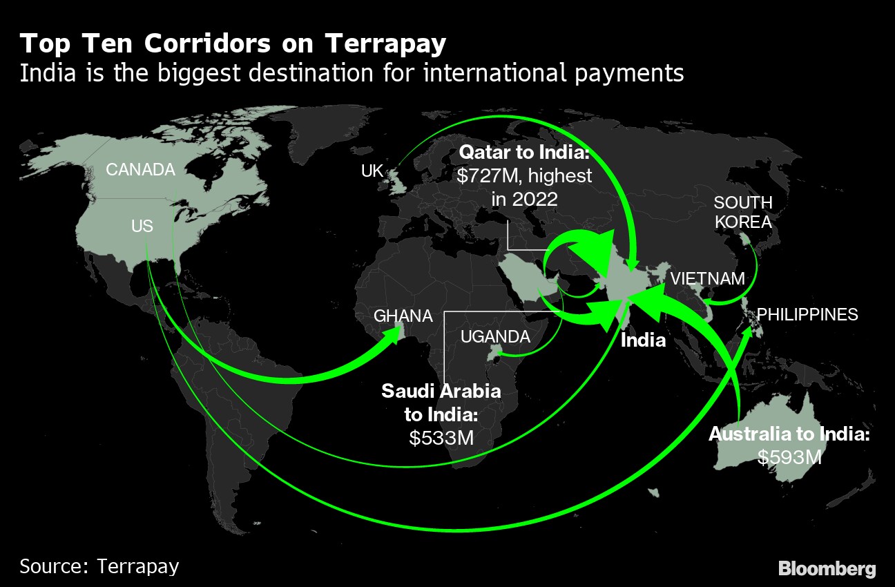 The company's numbers suggest India is the biggest recipient of money from overseas. As the chart shows, money is flowing from Qatar, Saudi Arabia, Australia, and the US. This echoes World Bank estimates, as well as UN data, which shows 18 million Indians living outside their country of birth — the biggest diaspora in the world. In 2022, India hit a record $100 billion in remittances, marking a 12% rise year on year. This is partly due to trends around the pandemic. Across the Gulf region where many Indians have moved, vaccinations and the resumption of travel meant migrants could go back to work. The benefits of higher oil prices also helped overseas workers send more money to their families. Highly-skilled Indian migrants from the US, UK and Australia were also sending more money home, helped by job support programs during Covid-19 restrictions. Indian migrants may have also taken advantage of the depreciation of the rupee against the US dollar, according to the World Bank.