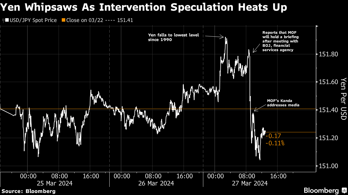 “The rise in USD/JPY towards 152 has clearly rattled a few cages in Tokyo,” said Peter Kinsella, the global head of FX strategy at Union Bancaire Privee. “I expect interventions sooner rather than later.”